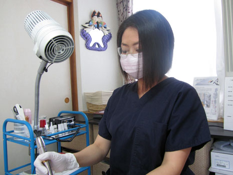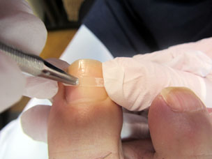 「それから巻き爪の部分にはコットンパッキングをしておきますね。」
