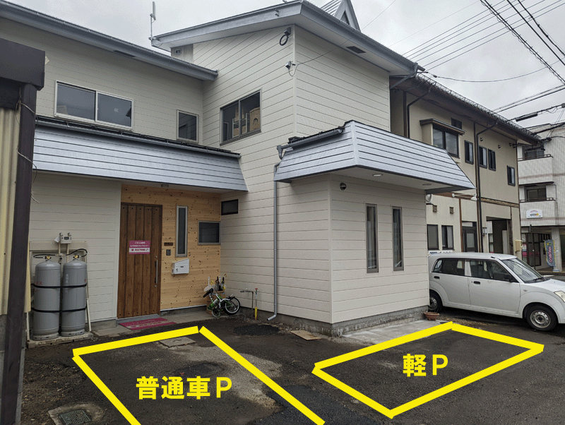 普通乗用車はドア前に縦置きして頂けます。また軽自動車の場合は縦列駐車でお願い致します。