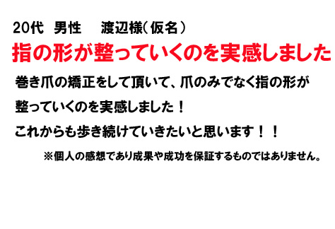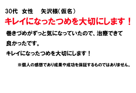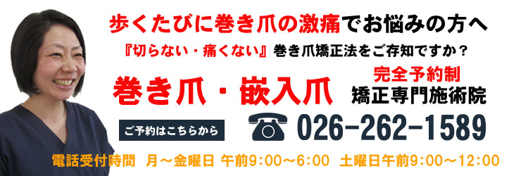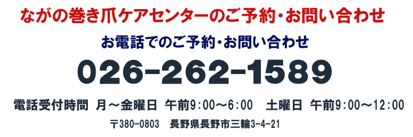 本気で『今の自分の巻き爪を良くしたい』、『手術で爪を剥いでしまうのは嫌だ』とお考えの方は、是非お問い合わせください。