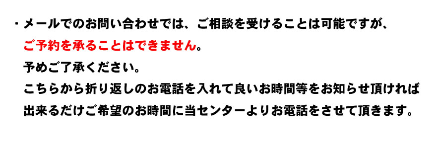 また、当センターは完全予約制です。ご予約頂いたお時間は、その方との一期一会のお時間です。