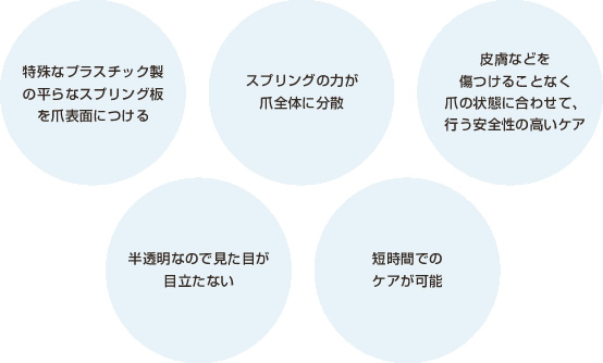 当センターで行うB/S SPANGEによる巻き爪矯正法はワイヤーによる矯正法とは違い、