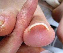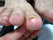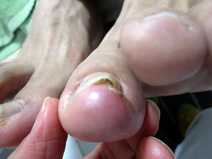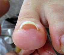 「これは巻き爪ですね。とりあえず爪の横の皮膚に膿があるので抗生物質を