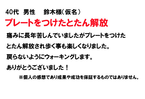 プレート症着後、直後効果を感じて頂ける患者さまが多いとお見受けしております。