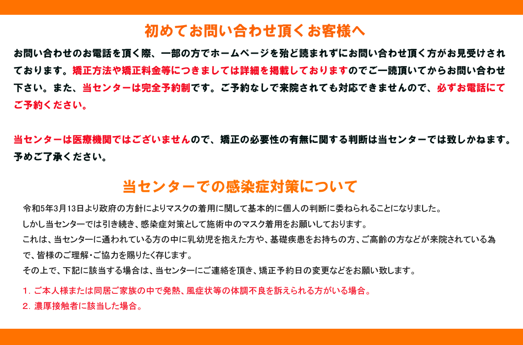 おかげさまで当センターをご利用頂くお客様が増えて参り、矯正時間に費やす時間が多くなっております。