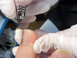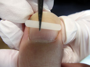 次に爪を計測し、患者さまの爪のサイズに合ったプレートを装着します。