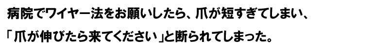 「うちでは、ワイヤー法で矯正することも可能ですが、現在の爪の状態は