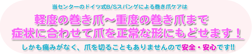 巻き爪でお悩みの方は是非当センターの【B/S SPANGE】による